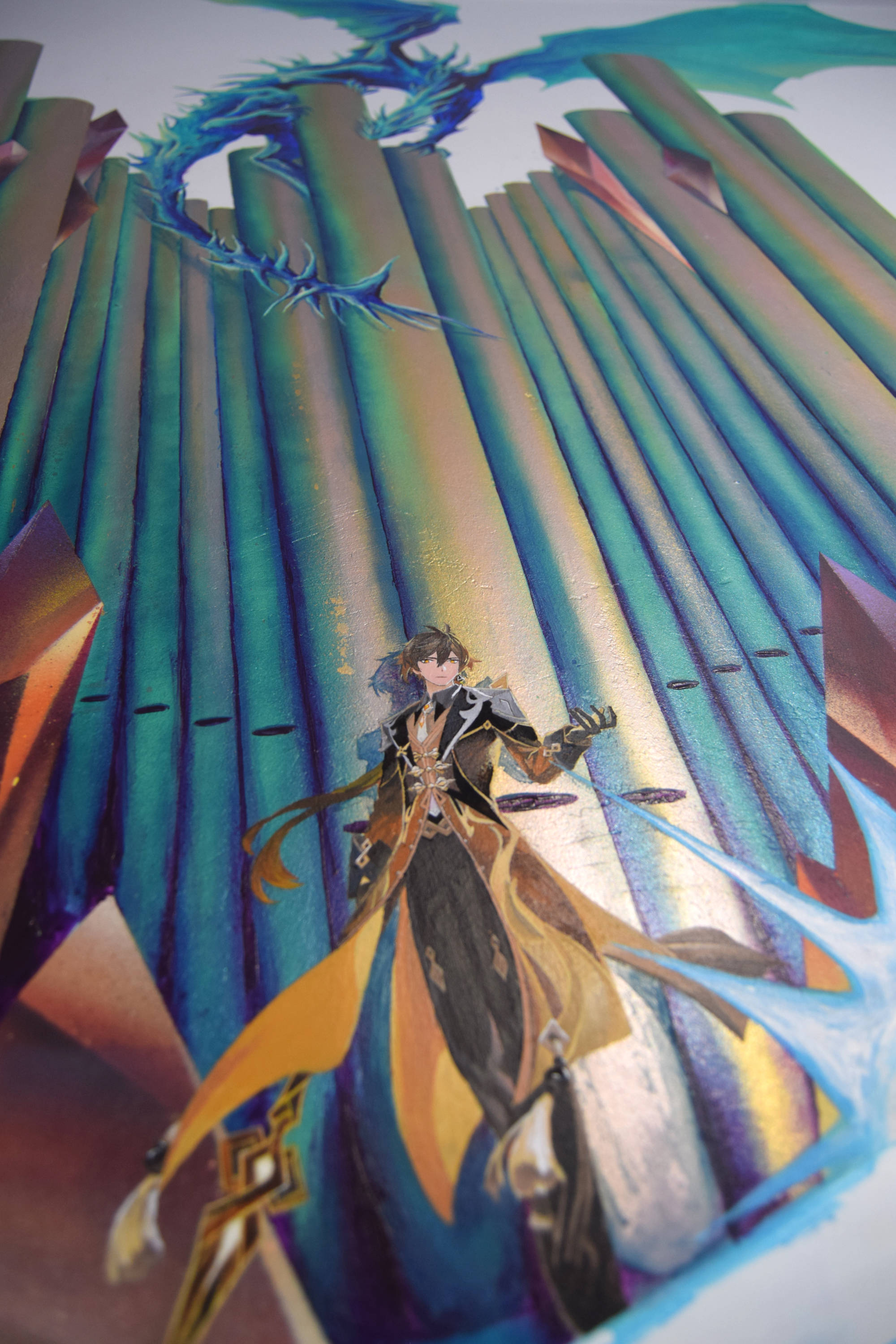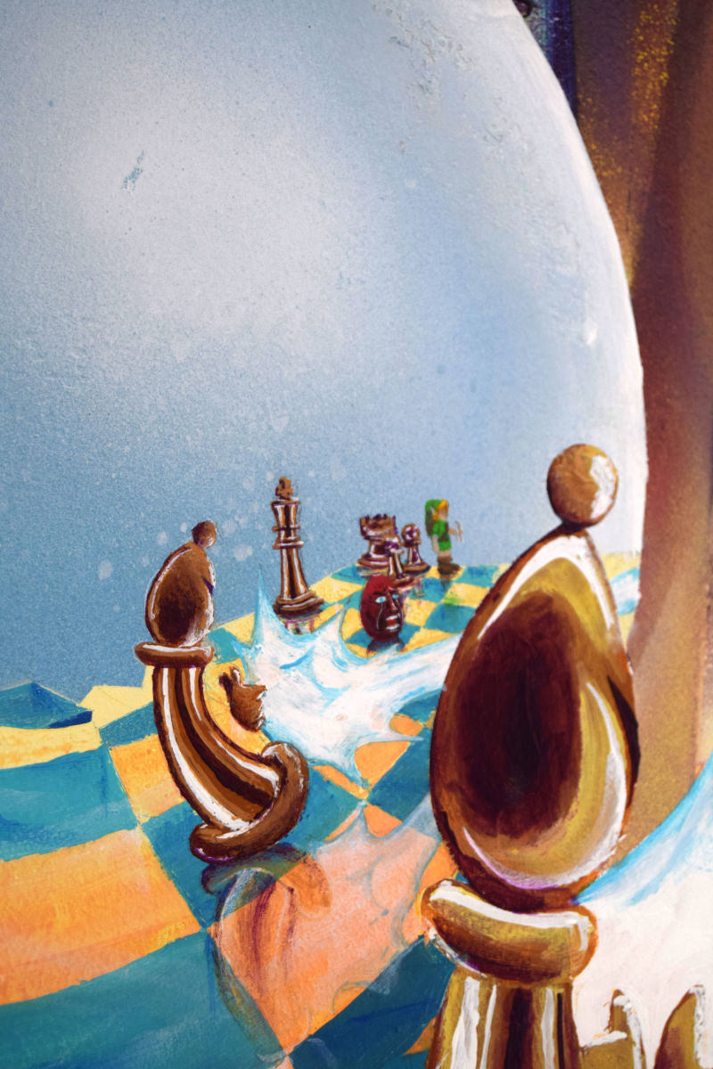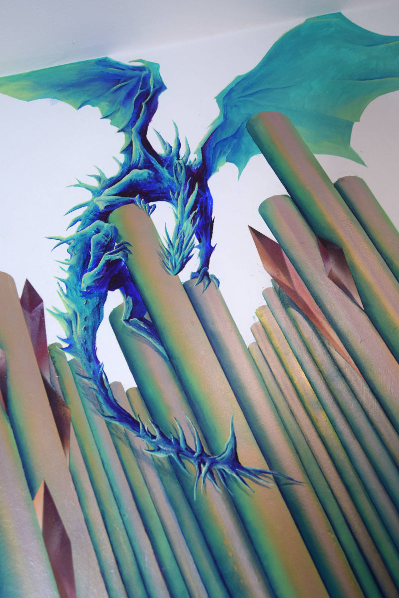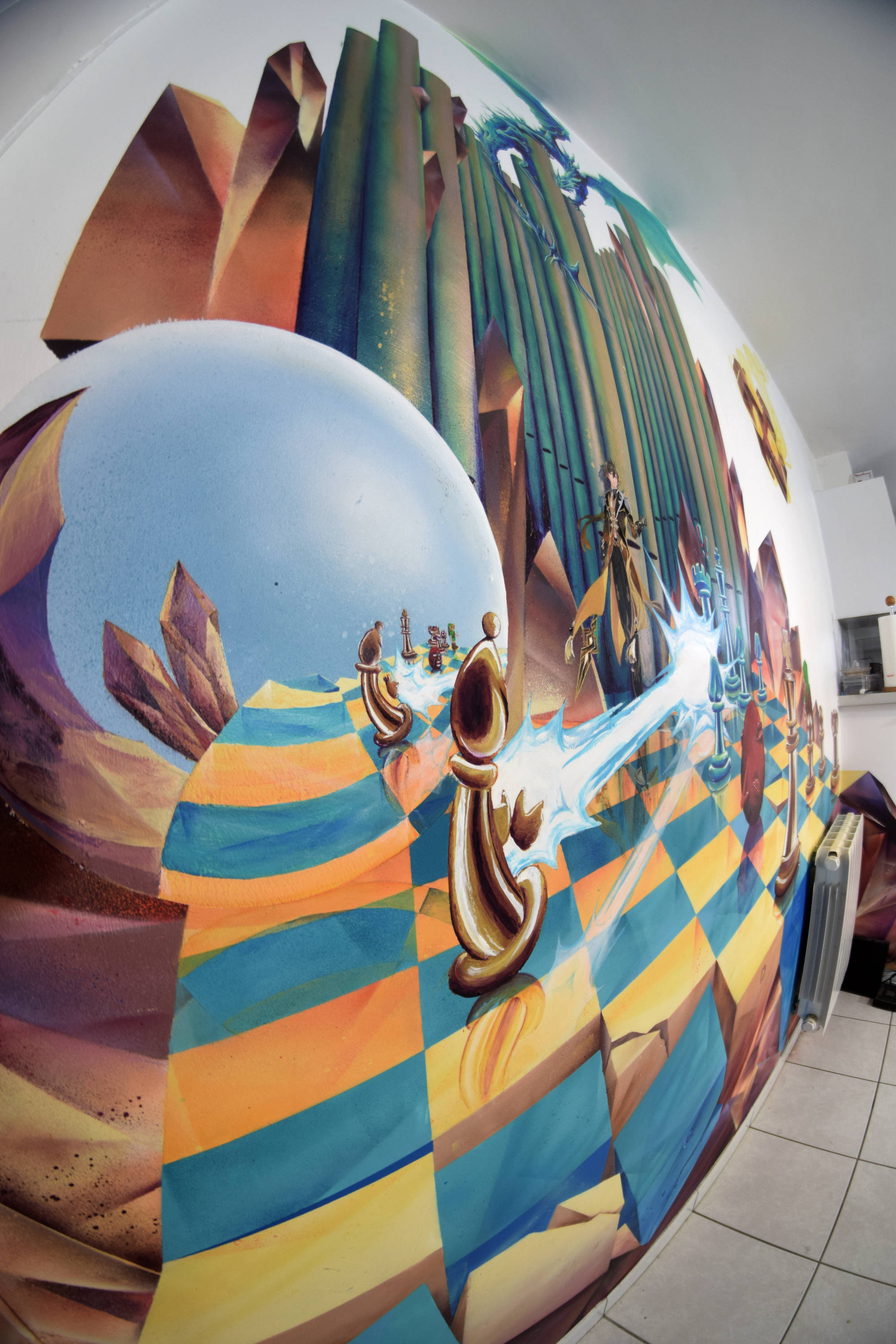 Fresque réalisée chez un particulier avec pour thèmes les échecs, l'orgue et l'heroic fantasy. Le décor a été peint à la bombe tandis que les personnages ont dûs être faits au pinceau pour atteindre un niveau de détail plus élevé.