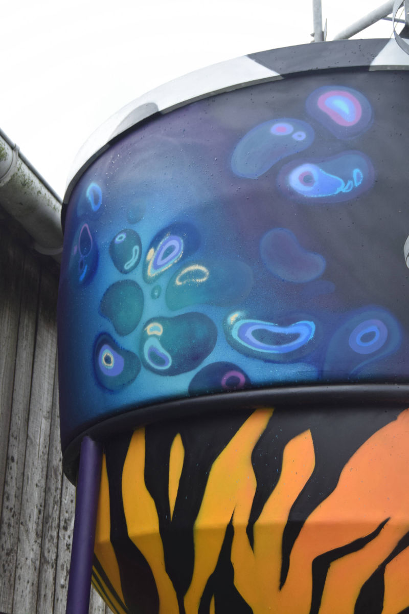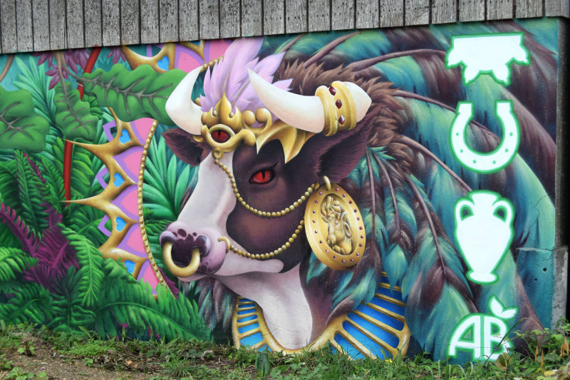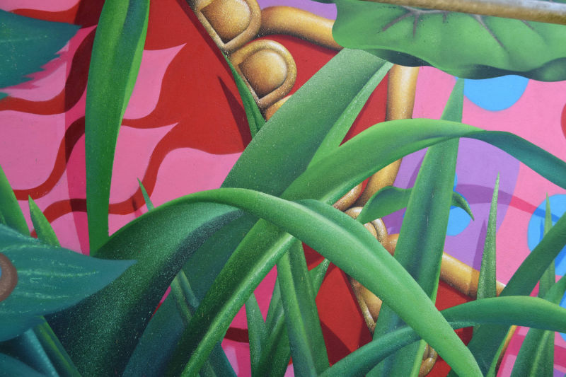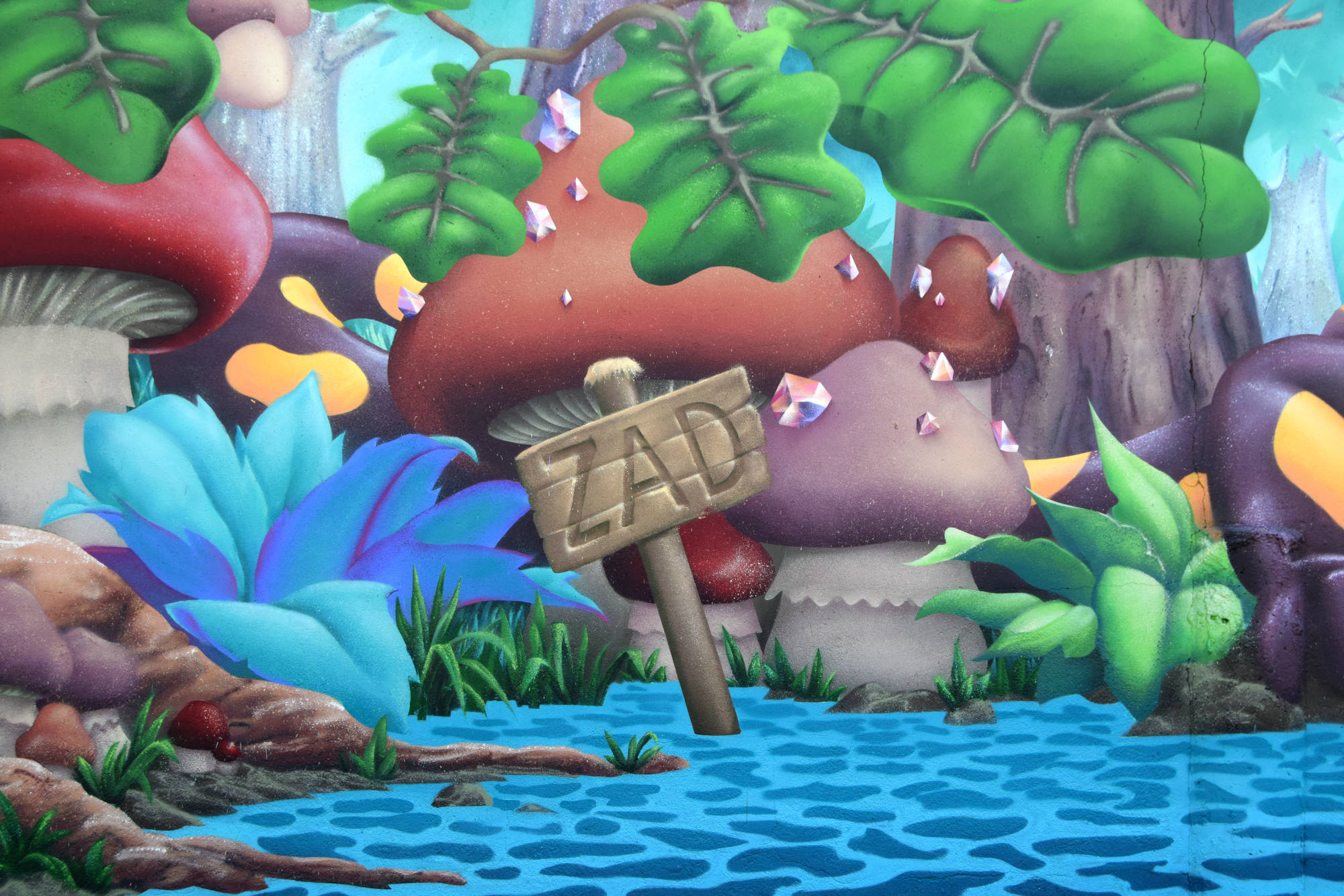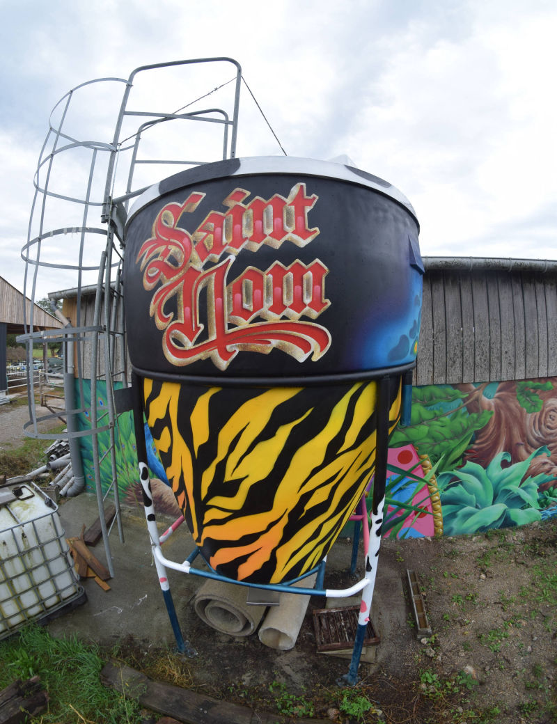 Décor végétal pour la ferme de Saint-Nom à la Turballe, productrice de lait bio. La seule contrainte était d'exploiter une faune et une flore locale, à laquelle j'ai pu superposer une dimension fantasmagorique en ajoutant des cristaux, et en faisant certains éléments surdimensionnés comme la salamandre ou les champignons.